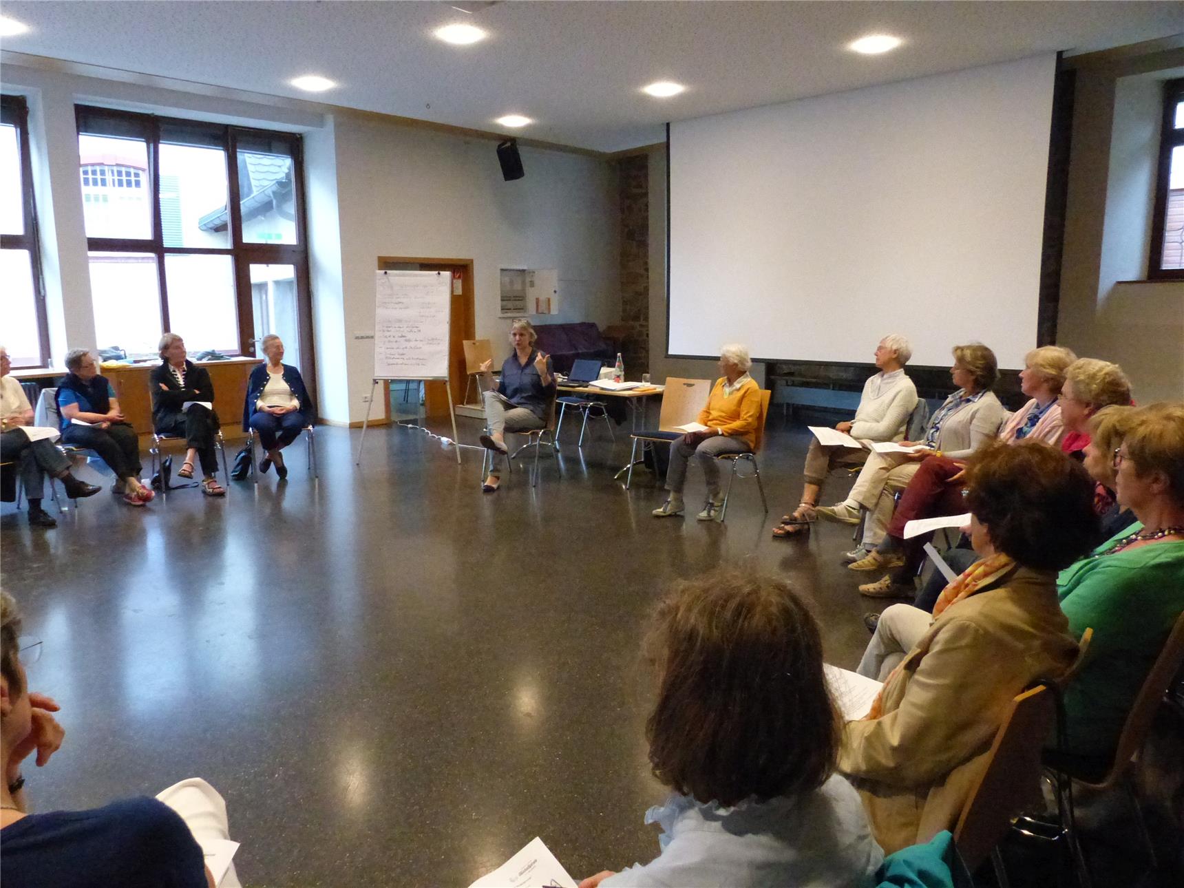 Nach einem Erfahrungsaustausch untereinander wurden die Teilnehmenden mit der spirituellen Haltung der "aufmerksamen Präsenz" vertraut gemacht. Weitere zentrale Themen waren eine gute persönliche Vorbereitung des Besuchs und das Gesprächsverhalten der Besuchsdienstmitarbeitenden. Die Teilnehmenden erhielten Praxistipps, wie Gespräche förderlich gestaltet werden können. Intensiv wurden die Erfahrungen der teilweise langjährigen Mitarbeitenden mit schwierigen Situationen im Besuchsdienst besprochen. So etwa Besuche bei Menschen mit Demenz, bei Menschen mit Sprachschwierigkeiten nach Schlaganfall oder redseligen oder schweigsamen Menschen. Dr. Regina Kebekus stellte zum Abschluss des Abends auch weiterführendes Material für die praktische Arbeit vor. Sammlungen mit Gebeten und liturgischen Ritualen können in der Besuchsdienstpraxis eine hilfreiche Unterstützung sein. Dass zu einem gelungenen Besuch auch ein angemessener Abschied von dem Besuchten gehört und wie dieser gestaltet werden kann, bildete den Schlusspunkt des Abends.